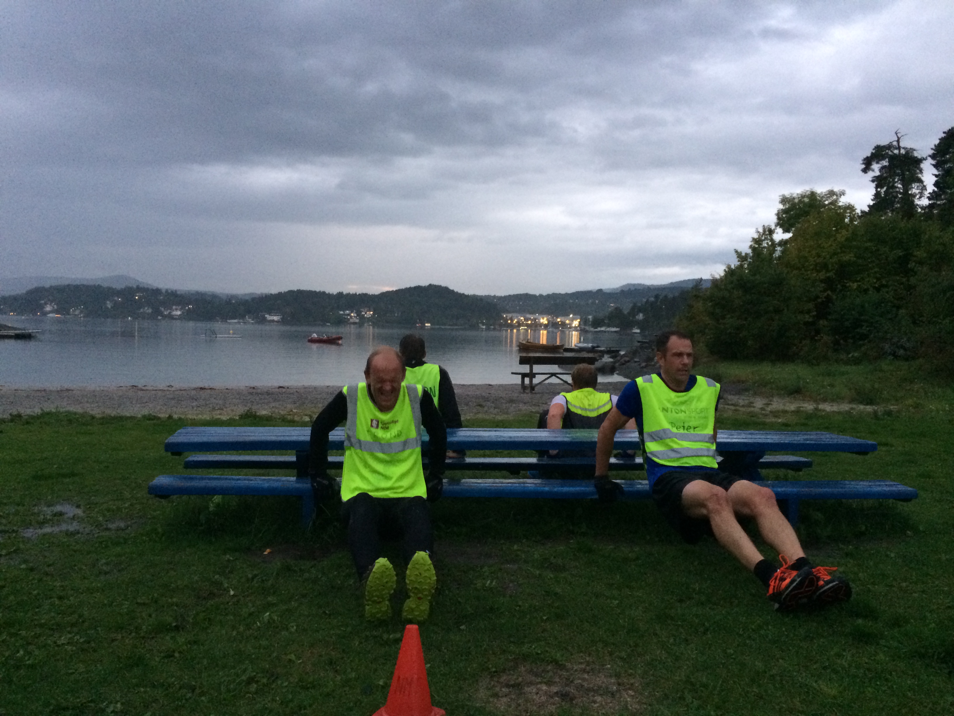 Styrke del 1 m/ 5 stk stasjoner hvor vi jobbet i 45 sek med 15 sek pause. Vi startet med rydd diagonal, dips, situps, amerikaner og bakkeløp. Dette gjennomførte vi 2 ganger. Deretter var det klart for stryke del 2 m/ 5 stk stasjoner. Vi startet med planke, dips, one legg dead lift, push ups med sidebevegelse og russian twist. Dette gjennomførte vi også 2 ganger. Til tross for litt mygg kjempet alle sammen knallhardt. Veldig gøy å se hvor hardt Henrik x2 kjørte på. Det er sånt vi liker! Husk å melde dere på økten på torsdag, og ikke glem å gjennomføre testøkten lørdag.