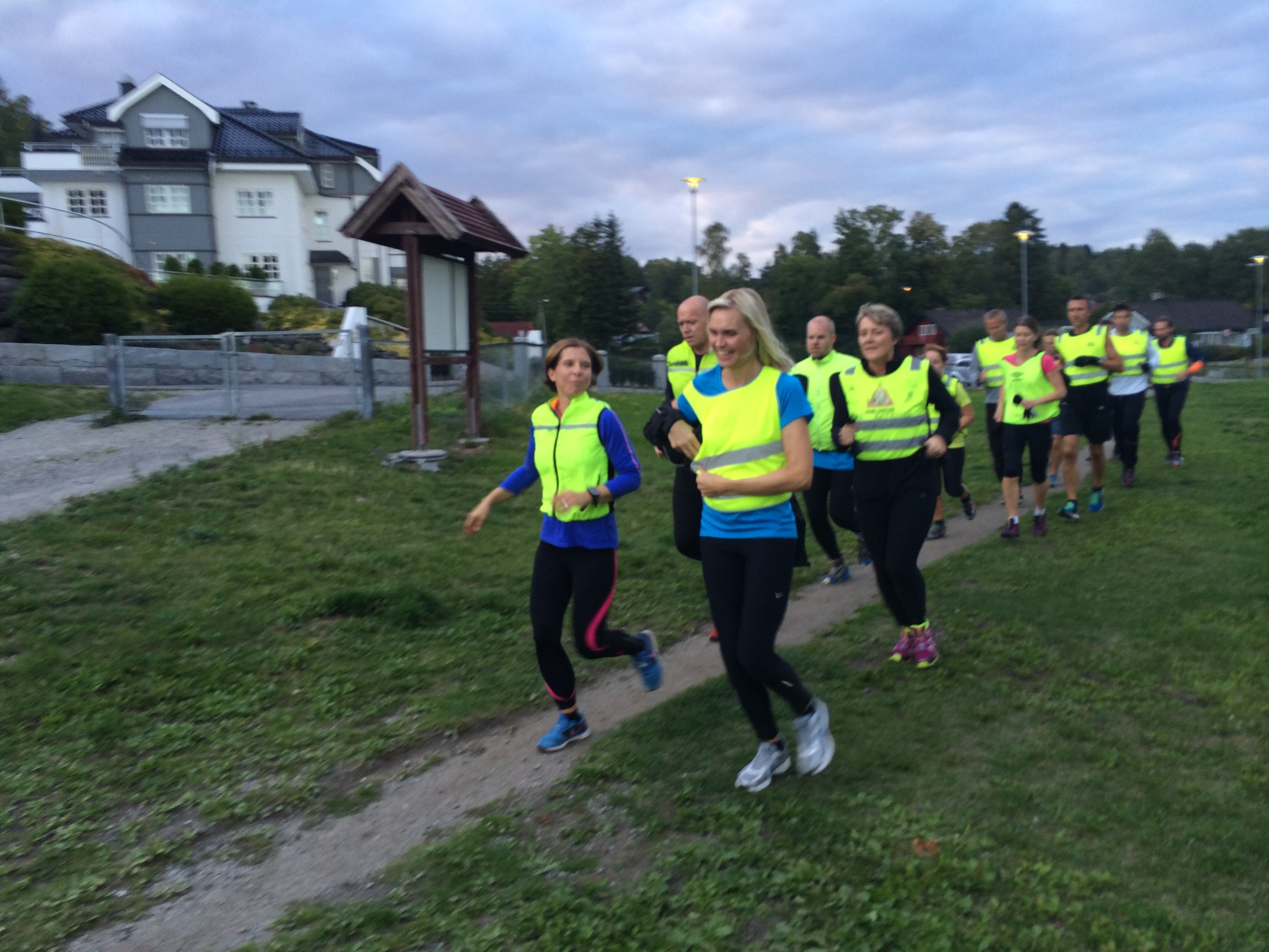 32+2 NMTère på plass kl 1930 i kveld! Veldig bra at så mange valgte å ta turen innom i kveld gitt at værgudene ikke viste seg fra sin beste side. Kveldens meny bestod av en rolig og god oppvarming ned til Hvamodden. Etter dette var det duket for løpeintervall med innlagt styrke. Pyramide intervall 2m,3m,4m,3m med 1 min pause. Løypa var lagt opp til at vi kjørte harehopp og salamander på hver kortende.