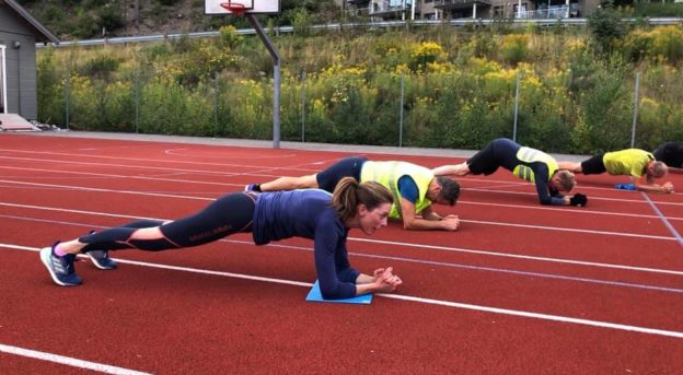 Rett nummer to var et intensivt styrkeprogram. Fire tre minutters bolker med variasjoner av planke, mage, hoftehev og pushups. Her fikk vi god tilbakemelding fra enkelte deltakere om at øvelsene hadde den ønskede effekt, spesielt på magemusklene.