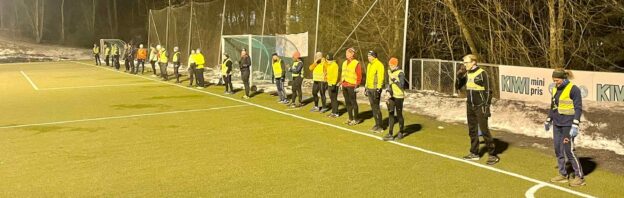 Ikke alt vi gjør ute kan trygt gjenskapes inne. Som å tenne 20 fakler rundt en 250m lang løype på frossent gress – uten at brannalarmen går av. Mobilisering/terrengløp: Løp 2 min Rolig + 2 min Raskere. Snu Retning, gjenta. Snu Retning. 90 sek. S-løp (Rolig – Raskere – Raskest), R-endring. 60 sek S-løp (Rolig – Raskere – Raskest). Snu retning, gjenta. FriLøp 4 min. Slutt TerrengLøp.